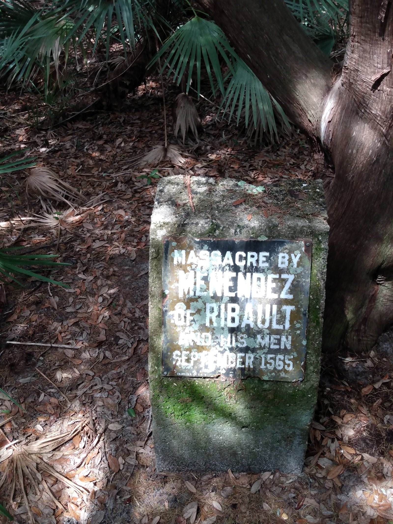 I figure Menéndez said something like, “Any of y'all Catholic?” to the first batch of weak and starving French guys, and when they pulled themselves up to full height, tapped themselves on the chest, and answered with pride and defiance that they were Huguenots, Menéndez and his men slaughtered them. When he asked the second batch of weak and starving French guys, “So, how about y'all? Y'all Catholic?” probably a few of the quicker thinkers said they would happily convert, and only 98% of them died in their own blood. As for the few women, the first question was probably not about their religion, but along the lines of, “Can you cook and sew?” Then the few who were spared were required to convert.
